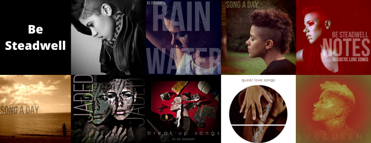 In 2013 her first album came out, Queer POP Mixtape is the perfect example of a mixtape, 24 songs that are a melding pot of styles. Rain Water followed with a beautiful, old-school, slow jam sound and creative fluidity to get the juices flowing. In 2014 and 2015 she challenged herself to Song A Day albums, writing a week’s worth of songs each. Her trilogy of love song albums (Notes, Acoustic Love Songs; Jaded, Dark Love Songs and Queer Love Songs) focus not only on the upside of love, but the downside too. Her Succulent EP is less love and more sex. My favorite type of song is a breakup song, when I saw Be Steadwell had a Breakup Songs album, I knew I found my diva.